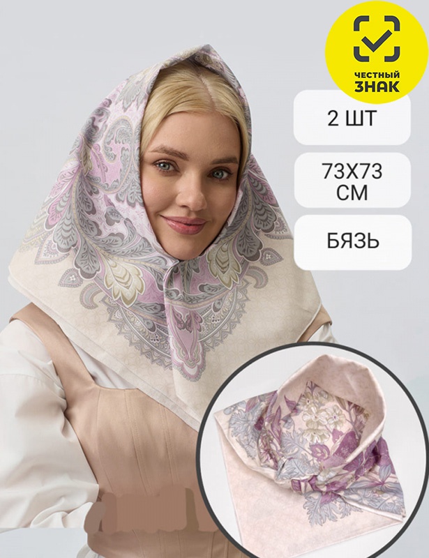 Комплект женских платков 73х73 см. Край платка надежно оверложен, легко гладится. В комплекте 2 шт, цена указана за комплект.