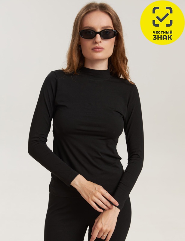 Водолазка облегающего кроя с длинными рукавами и аккуратной стойкой из основного полотна. Выполнена из мягкого, эластичного трикотажа, который комфортно прилегает к телу и подчеркивает силуэт. Минималистичный дизайн без лишних деталей делает модель универсальной.