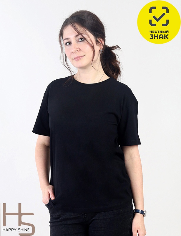 Футболка прямого силуэта длиной по линию бедер. Со слегка спущенными плечами, короткий рукав. Круглая горловина обработана узкой притачной обтачкой из рибаны с эластаном.