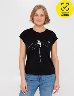 Футболка женская с коротким цельнокроеным рукавом, округлая горловина, печать на полочке.