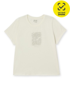 Футболка прямого силуэта с коротким рукавом. Круглая горловина обработана притачной обтачкой из рибаны с эластаном. Горловина спинки закрыта экстрафорной тесьмой. На полочке принт" МАГИЯ В ТЕБЕ"