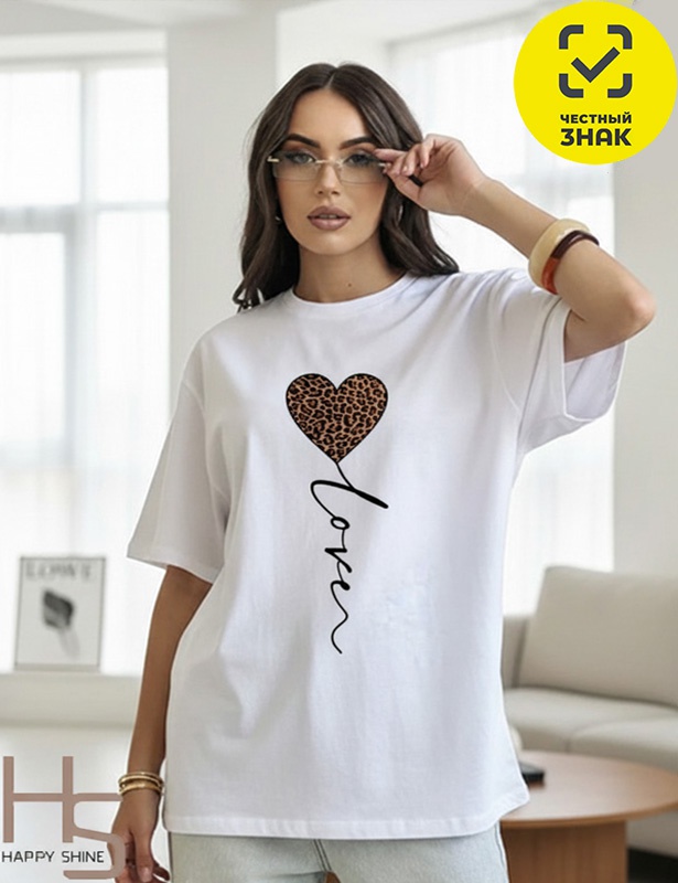 Футболка женская с короткими рукавами, свободного силуэта. Горловина круглая, обработана притачной бейкой. Перед футболки декорирован принтом.