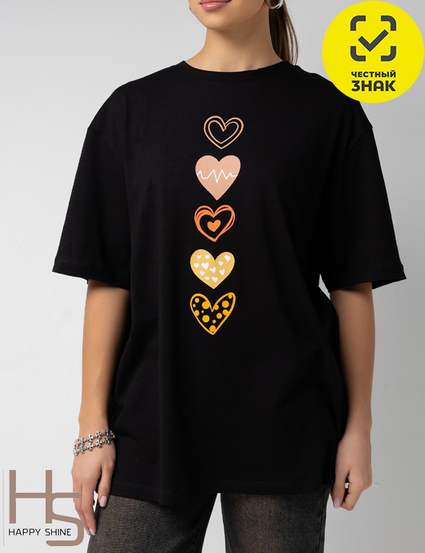 Футболка женская с коротким рукавом. Вырез горловины круглый, обработан притачной бейкой из рибаны с эластаном. На полочке печать.
