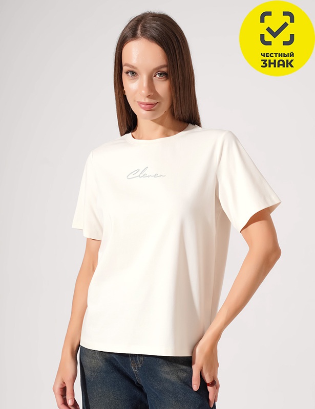 Производитель: ТМ Clever Артикул: CLE Футболка жен. 366462г_п (молочный) Пол: ЖЕНСКИЙ Полотно: кулирная гладь Состав: 92% хб, 8% эл Возраст: взросл