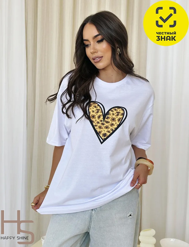 Футболка женская с короткими рукавами, свободного силуэта. Горловина круглая, обработана притачной бейкой. Перед футболки декорирован принтом.