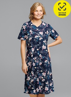 Халат женский прямого силуэта с круглой кокеткой, подчеркнутой кантом. Два глубоких боковых кармана, застежка на пуговицы
