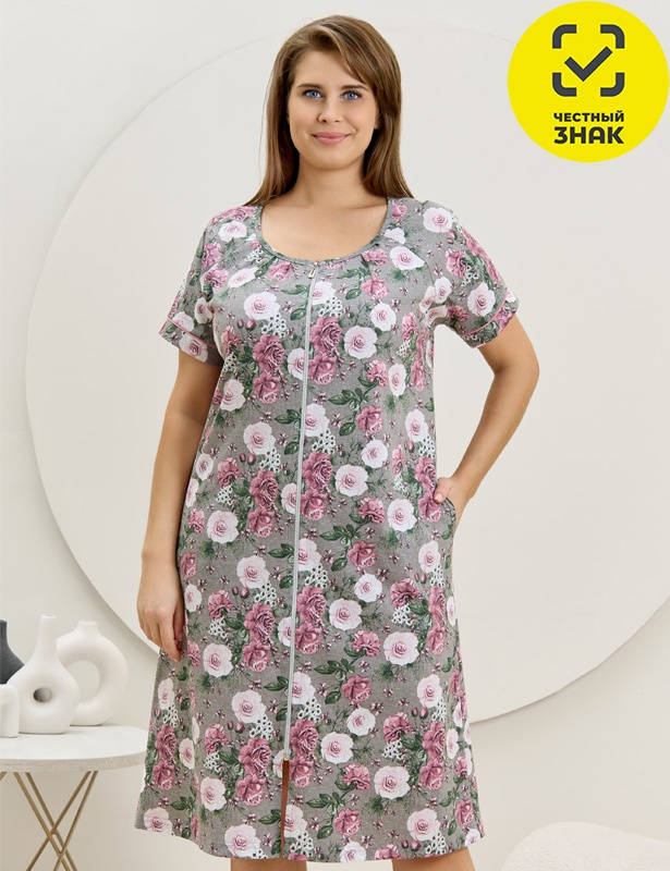 Производитель: ТМ ВиоТекс Артикул: Х-763 Халат "Флэр" (СЕРЫЙ) Пол: ЖЕНСКИЙ Полотно: кулирная гладь Состав: хлопок 100% Возраст: взросл