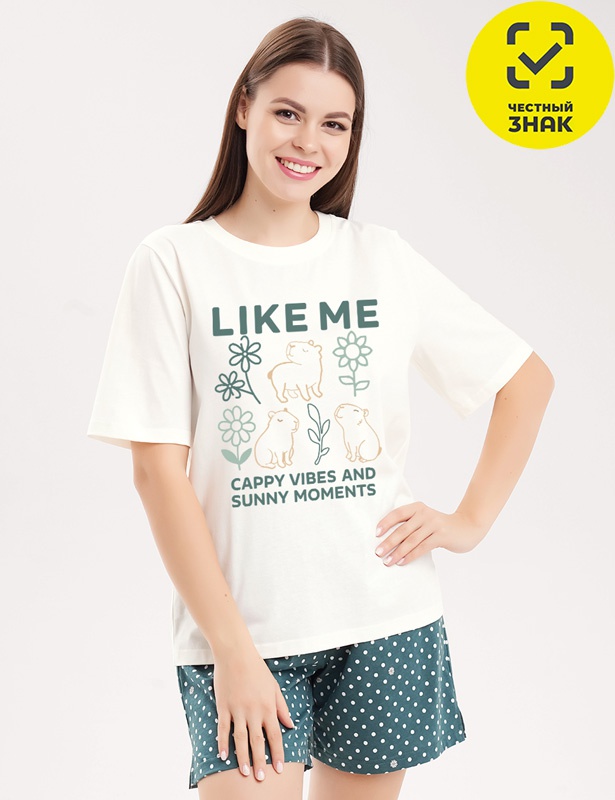 Производитель: ТМ Clever Артикул: CLE LP26-1225/1 Набор одежды жен. Капибара (молочный/т.зелёный) Пол: ЖЕНСКИЙ Полотно: кулирная гладь Состав: хлопок 100% Возраст: взросл