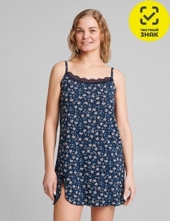 Укороченная сорочка на тонких бретельках выполнена из нежной вискозы с оригинальным ярким рисунком. Отделка мягким эластичным кружевом
