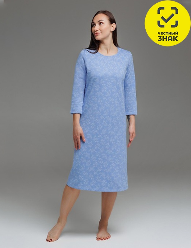 Сорочка женская из набивного футера длиной до колена, рукава длиной 3/4, округлый вырез горловины