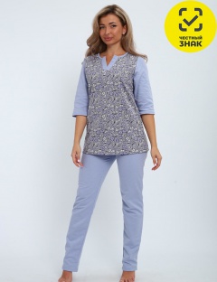 Производитель: ТМ Плиона Артикул: 01059 Пижама женская (Серо-голубой) Пол: ЖЕНСКИЙ Полотно: футер начес Состав: хлопок 100% Возраст: взросл