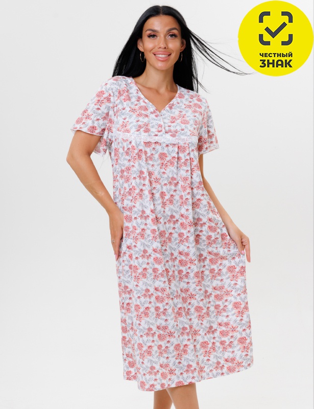 Производитель: ТМ Моделлини Артикул: 2056/4 Ночная сорочка Пол: ЖЕНСКИЙ Полотно: кулирная гладь Состав: хлопок 100% Возраст: взросл