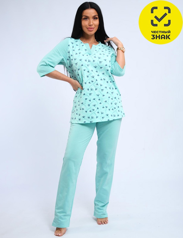 Производитель: ТМ Плиона Артикул: 01059 Пижама женская (Бирюзовый) Пол: ЖЕНСКИЙ Полотно: футер начес Состав: хлопок 100% Возраст: взросл