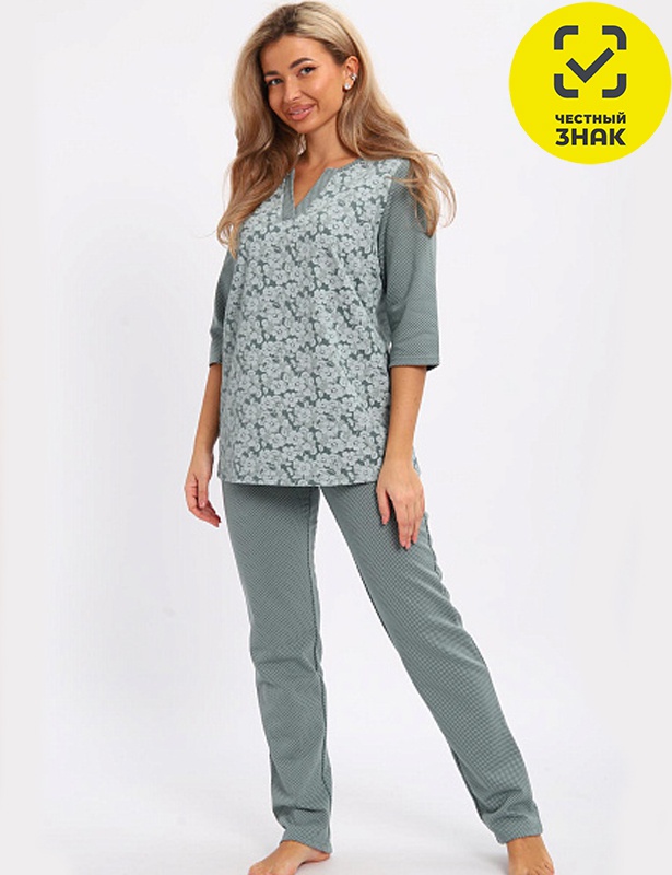 Производитель: ТМ Плиона Артикул: 01059 Пижама женская (Зеленый) Пол: ЖЕНСКИЙ Полотно: футер начес Состав: хлопок 100% Возраст: взросл