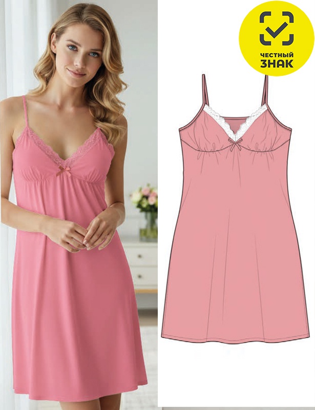 Ночная сорочка на тонких бретелях с кружевной отделкой лифа. Лёгкий свободный силуэт, представлена в нежных однотонных оттенках. Идеальна для сна и отдыха.