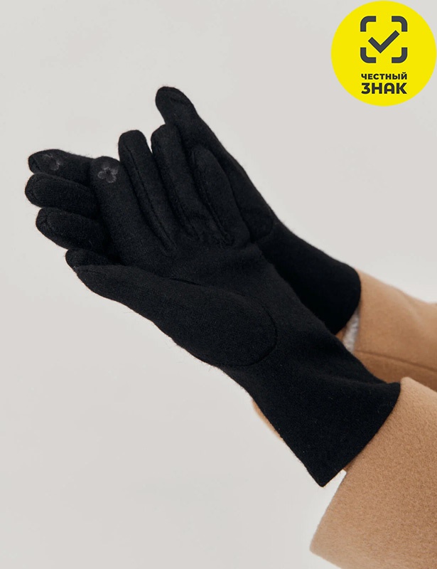 Перчатки женские сенсорные с подкладом, с различными декоративными нашивками.