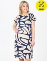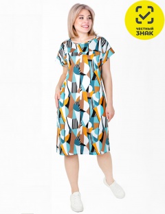 Туника из приятного к телу хлопка, с короткими спущенными рукавами, длина немного ниже колена. Слегка приталенный силуэт визуально моделирует фигуру, делая ее стройнее.