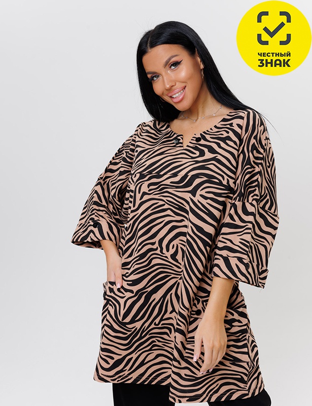 Модная туника для plus size с эффектным принтом “Волны” сочетает в себе стиль и комфорт. Модель привлекает внимание фигурной горловиной и изящной линией плеча. Практичные детали включают вместительные карманы и рукава средней длины. Универсальный крой прекрасно сидит на фигуре, а яркий принт добавляет динамичности. Идеально сочетается с джинсами, брюками или бермудами, подходит как для каблуков, так и для плоской подошвы.